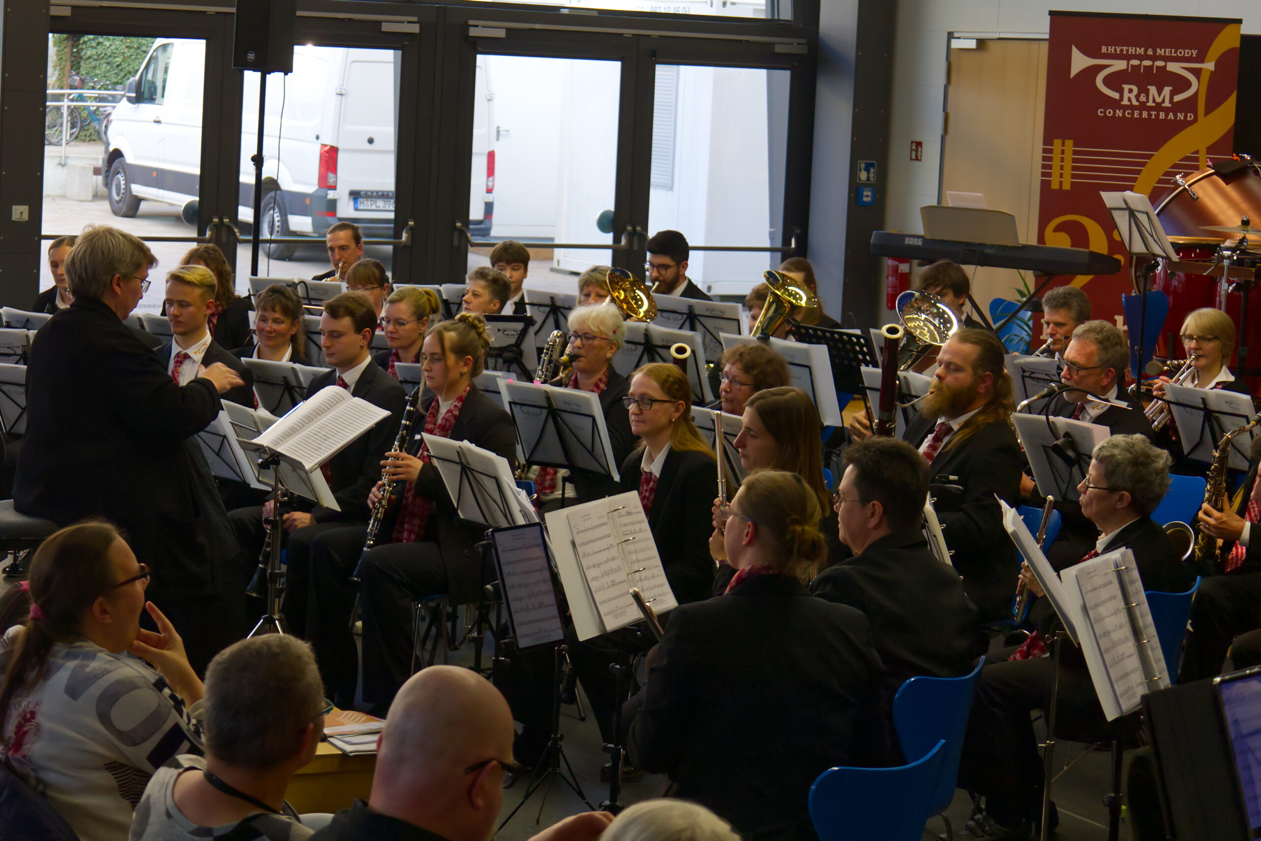 Unser diesjähriges Frühlingskonzert im Humboldt-Haus stand ganz im Zeichen des Mottos „Kino für die Ohren“. Mit eindrucksvollen Stücken wie How to Train Your Dragon und Highlights from Ratatouille präsentierten wir Ihnen Klassiker der Filmmusik. Mit Stücken wie Auf einem persischen Markt holten wir etwas aus unserem großen Repertoire zurück. Aber auch etwas Neues wie Formula One Theme und James Bond Suite waren dabei. Und so konnten wir das Publikum mit auf eine klangvolle Reise durch die Welt der Kinomusik.